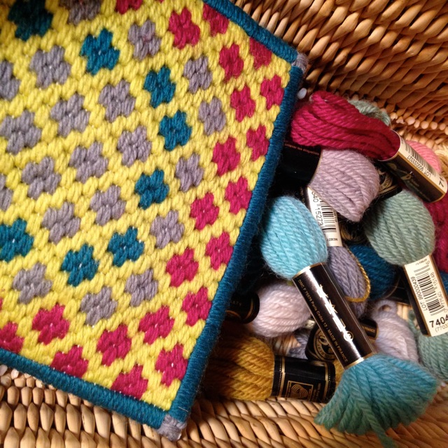 こちらはDMCのタペストリーウールの茶瓶敷き。