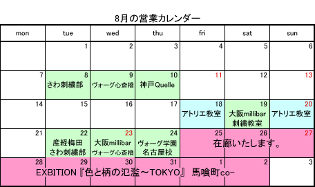 私の通常講座『刺繍でお洒落アイテムを作ろう』