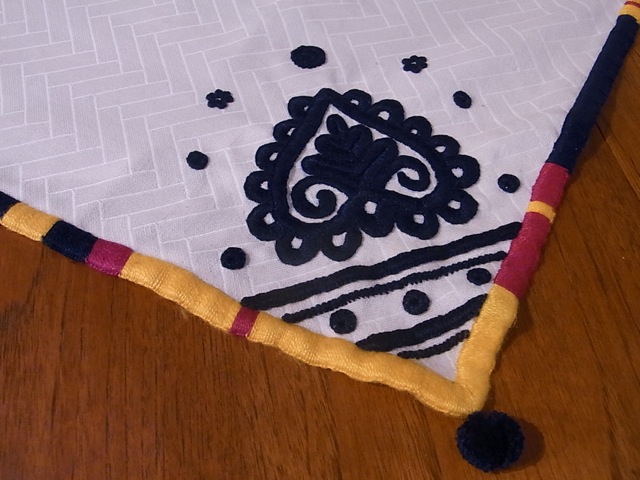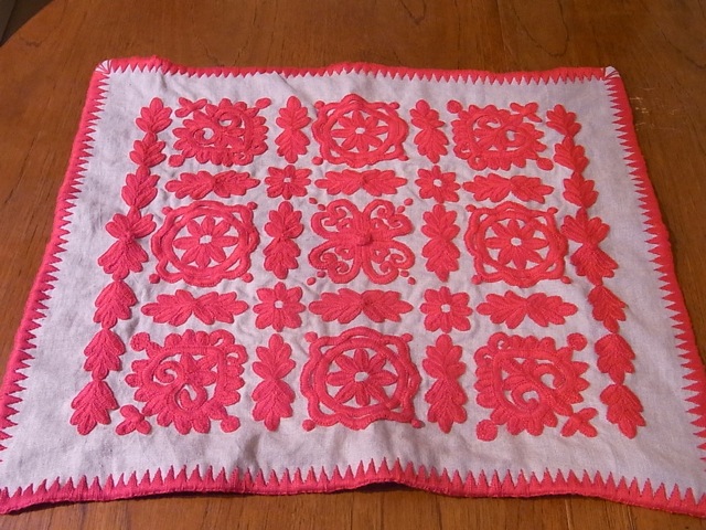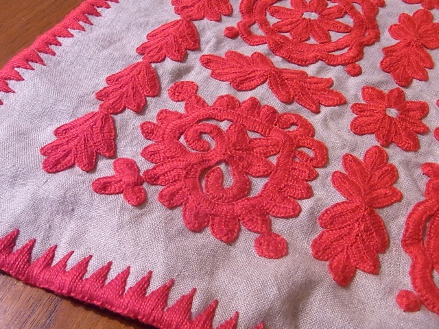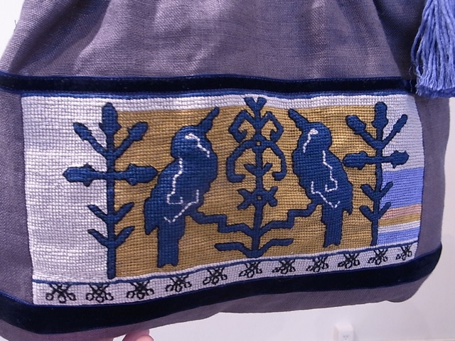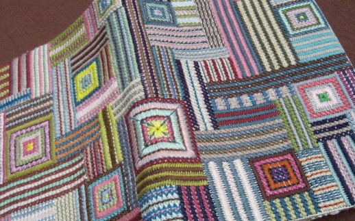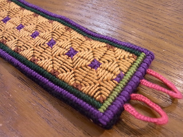 織り糸を数えながら、みっちり刺繍で埋めてい刺繍です。