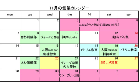 少し、刺繍教室のスケジュールに変動がございます。