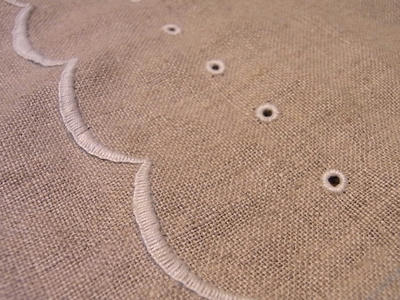 アイレットワークとスカラップを使ったポーチ。